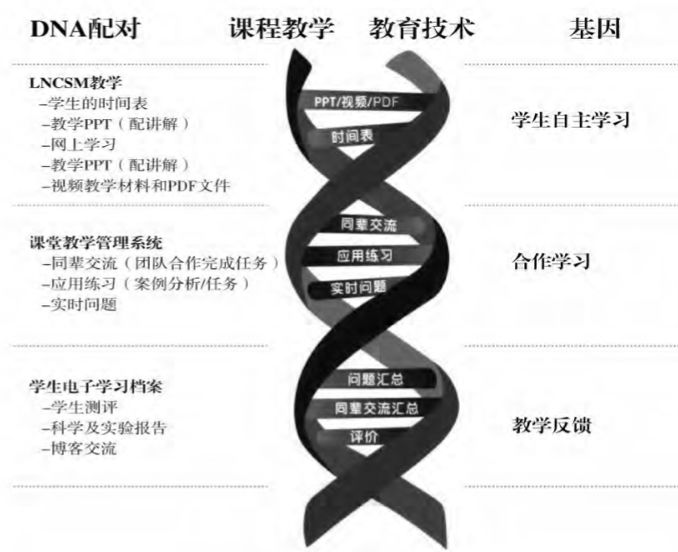在总结李光前医学院实施“翻转课堂”教学改革经验的基础上,学校提炼出指导教与学的DNA模式。南洋理工将 “参与、互动及自我主导”等新理念在全校范围内推广,作为学校系统开展各种通过网络虚拟空间学习行为效仿的模式。